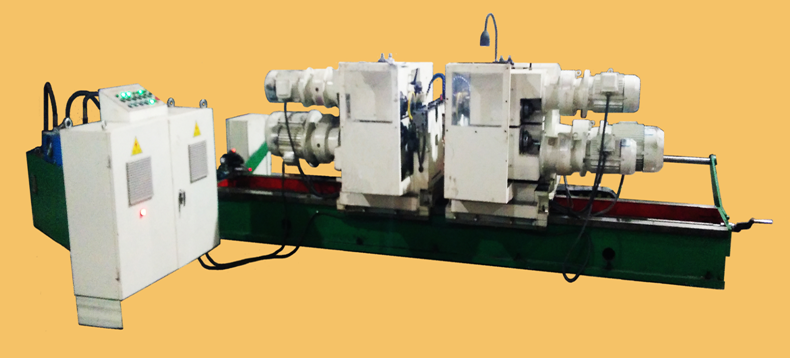 組成:1 床身 2左右拖板 3 左右組合機頭 4 左右托輥軸液壓夾緊工作臺 5液壓站 6電控箱 7操作站